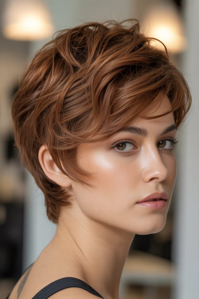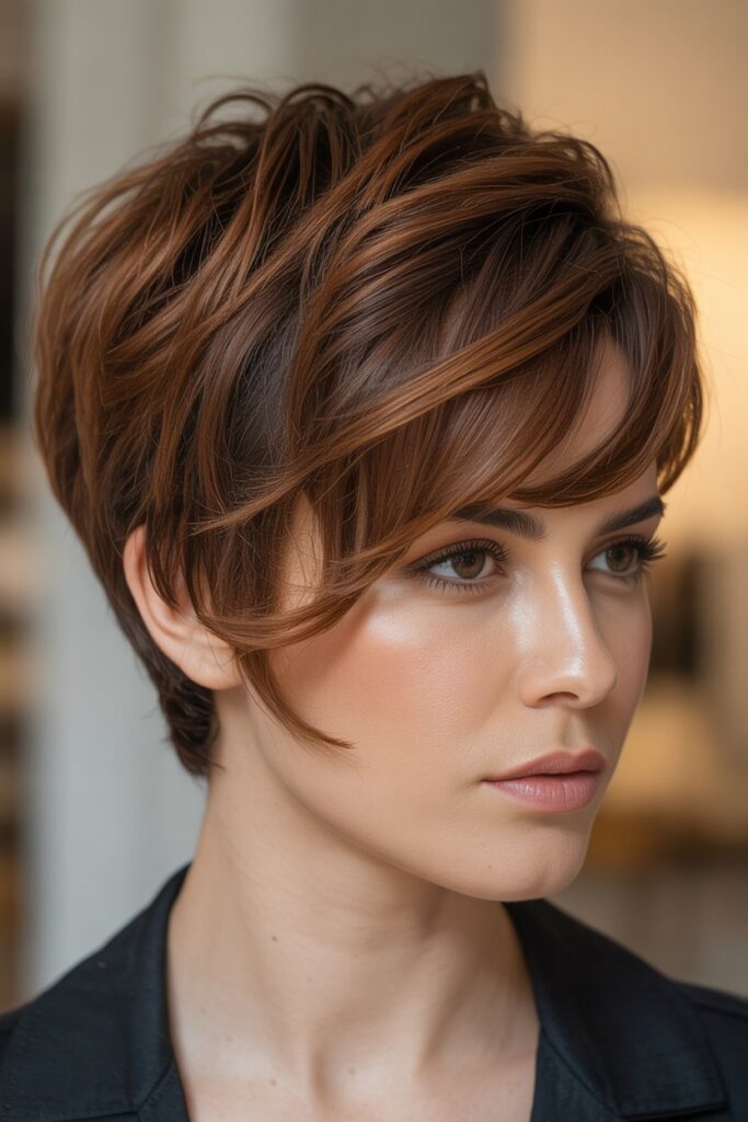 If you’re feeling bold, add a side-swept fringe or some color highlights to give your pixie an individual touch. Celebrities like Halle Berry, Charlize Theron, and Zendaya have shown that this style can be both elegant and playful.